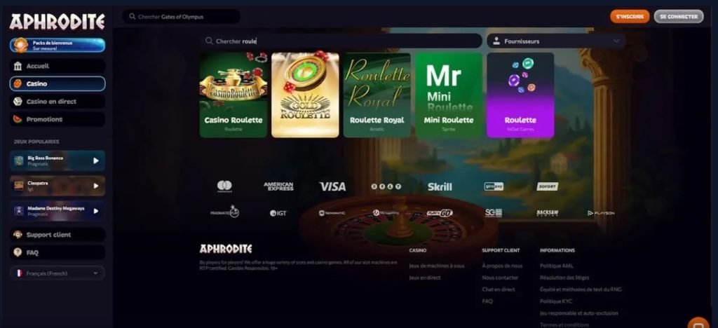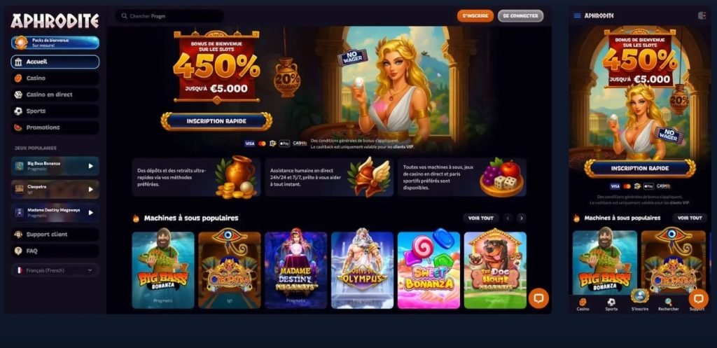 Auf den ersten Blick ermöglicht das Aphrodite Casino vielseitige und moderne Zahlungsabwicklungen. Neben klassischen Bankoptionen und E-Wallets lassen sich auch Kryptowährungen für Ein- und Auszahlungen nutzen. Dies macht die Plattform besonders flexibel für Anwender aus unterschiedlichen Regionen.