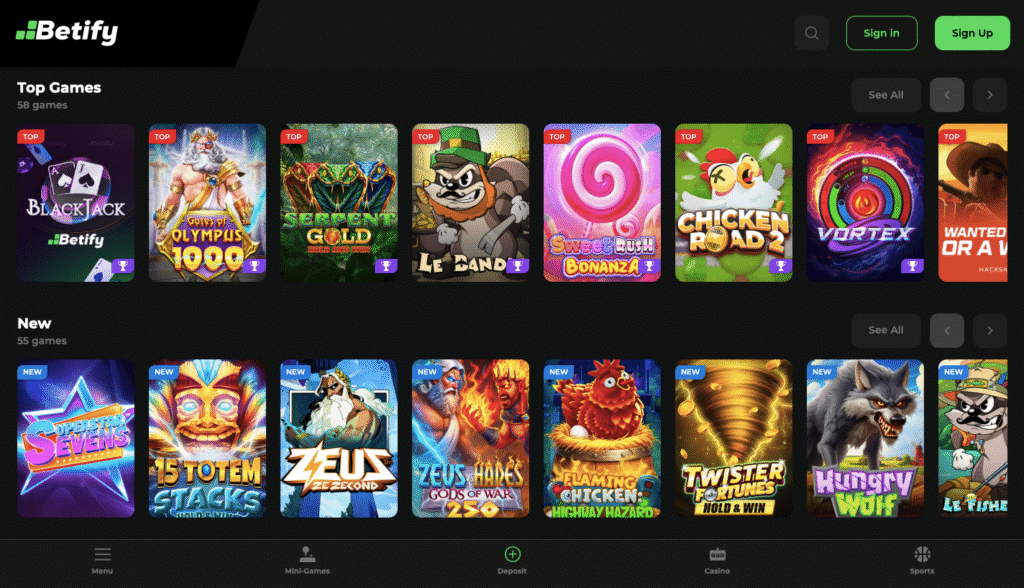 Spielauswahl: 10.000+ Slots sind Top-Liga. Bet365 hat mehr, aber Betify spielt in der oberen Liga.