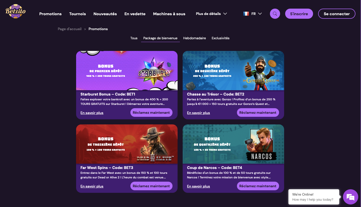 Bereits zur Eröffnung präsentiert Betzito seine Großzügigkeit: Das Willkommensangebot umfasst insgesamt bis zu 5 000 € sowie zusätzlich 500 Freispiele. Diese Summe wird geschickt auf die ersten vier Einzahlungen verteilt und bietet somit eine attraktive Starthilfe.