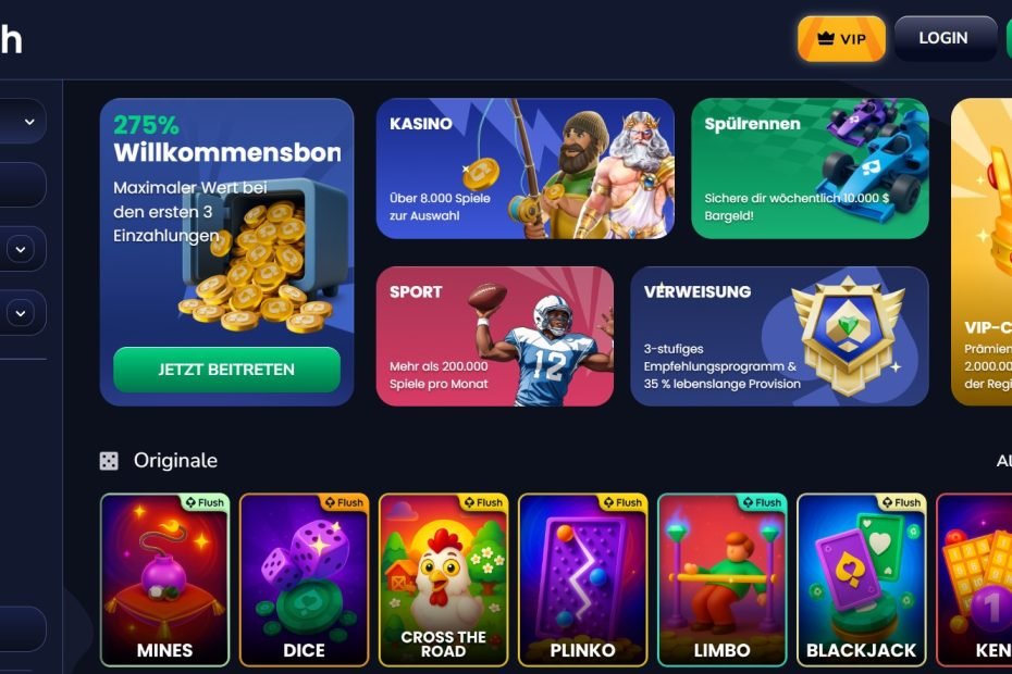 Flush Casino überzeugt mit einem riesigen Spielangebot, schnellen Krypto-Auszahlungen und attraktiven VIP-Vorteilen – ideal für Spieler, die ein unkompliziertes und lohnendes Krypto-Casino suchen.