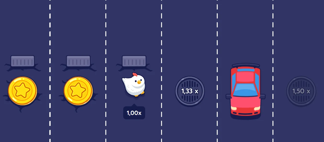 Mit jedem weiteren Schritt steigt die Spannung, denn hinter jedem Hindernis könnte schon der nächste LKW warten. Wer zwischendurch auf „Cashout“ klickt, beendet die aktuelle Session sofort und erhält den gesammelten Gewinn. Wird das Huhn jedoch von einem Lastwagen erwischt, ist der gesamte Einsatz inklusive aller bisher erzielten Multiplikatoren verloren.