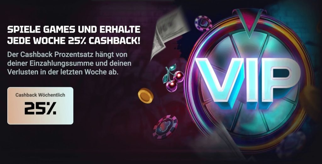 Cashback1-3% je nach VIP-StatusWöchentlich