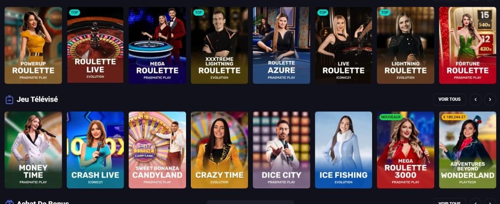 | Live Casino | Lightning Roulette, Crazy Time | Evolution Gaming |