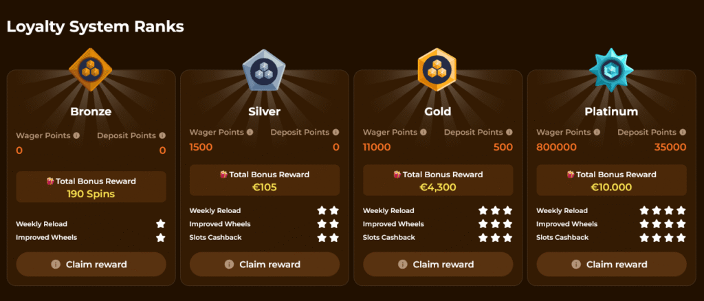 Das VIP-Programm ist aktivitätsbasiert. Mit steigenden Stufen wachsen Cashback-Prozentsätze, persönlicher Support und Auszahlungslimits. Genaue Stufenkriterien werden nicht öffentlich kommuniziert, was einige Spieler als undurchsichtig empfinden. In der Praxis gilt: regelmäßige Einzahlungen und aktives Spielen beschleunigen den Aufstieg nachweislich. Top-Tier-Mitglieder berichten von persönlichen Bonus-Angeboten und bevorzugter Auszahlungsbearbeitung.