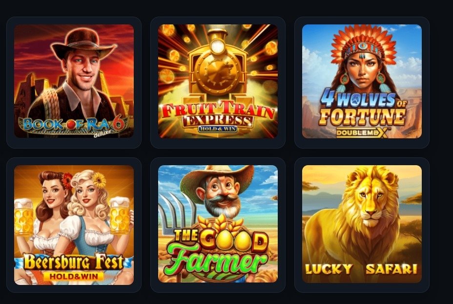 | Slots | Sweet Bonanza, Book of Ra Deluxe | Pragmatic Play, Novomatic |