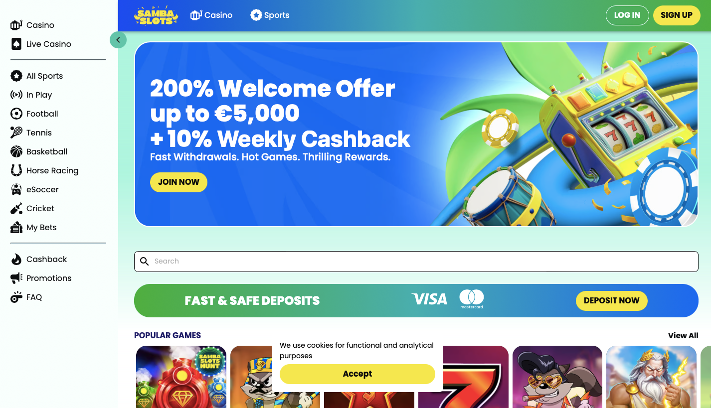 Brasilianisches Karnevalsflair trifft auf moderne Online-Casino-Erlebnisse: Das Samba Slots Casino begeistert seit 2024 Glücksspielfans aus ganz Europa. Mit einer Vielzahl von attraktiven Boni, spannenden Aktionen und einer riesigen Auswahl von fast 4.000 Spielen hat sich diese Plattform unter den beliebtesten Online-Casinos etabliert. Im Folgenden werden die wichtigsten Besonderheiten, Vorteile sowie potenzielle Schwachpunkte beleuchtet, um einen umfassenden Eindruck vom Anbieter zu vermitteln.