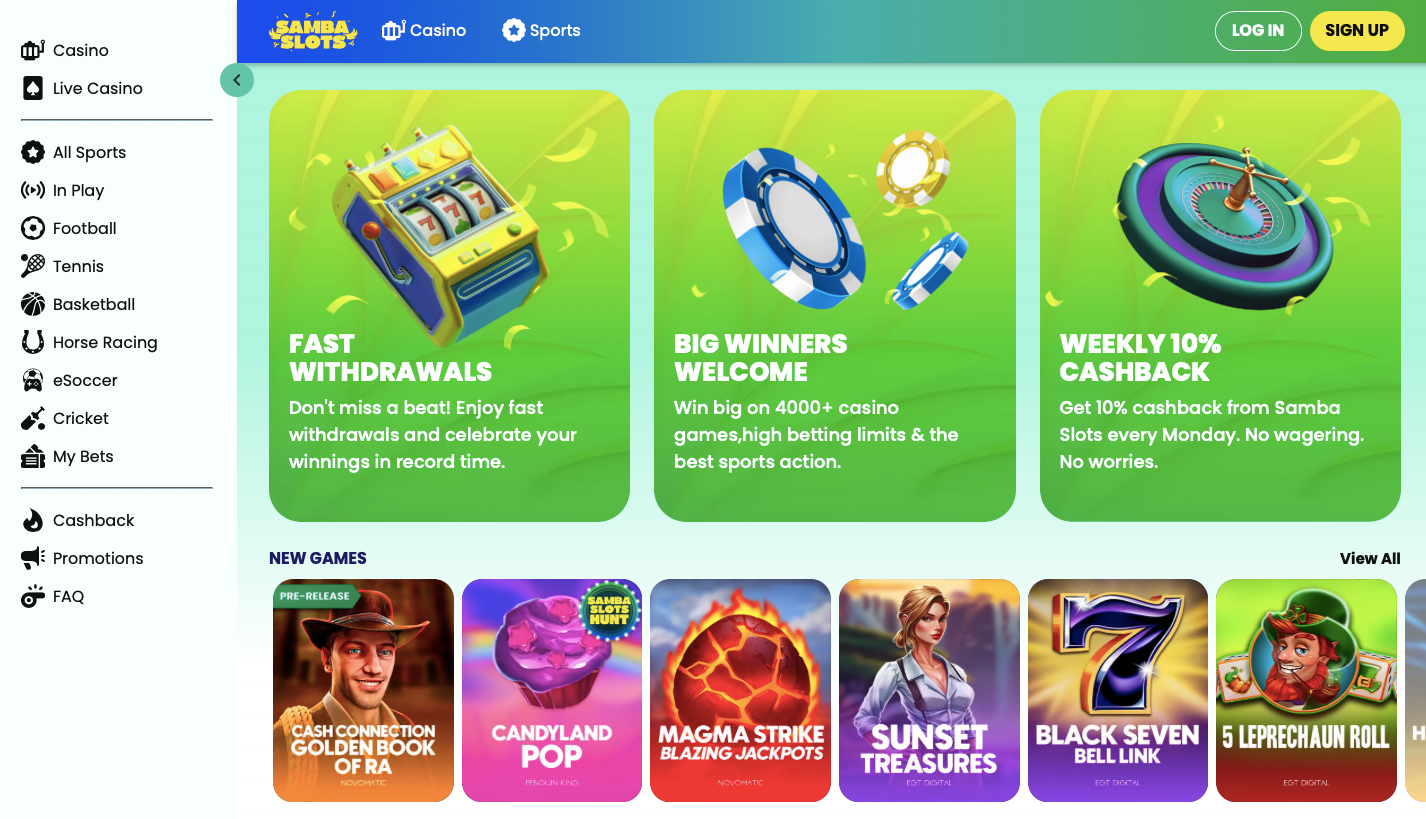 Das Samba Slots Casino versteht es hervorragend, sowohl neue als auch bestehende Spieler mit durchdachten Bonusaktionen anzusprechen. Besonders der großzügige Willkommensbonus sorgt für einen gelungenen Start. Dennoch sollten alle Teilnahmebedingungen vorab genau geprüft werden, um spätere Überraschungen zu vermeiden.