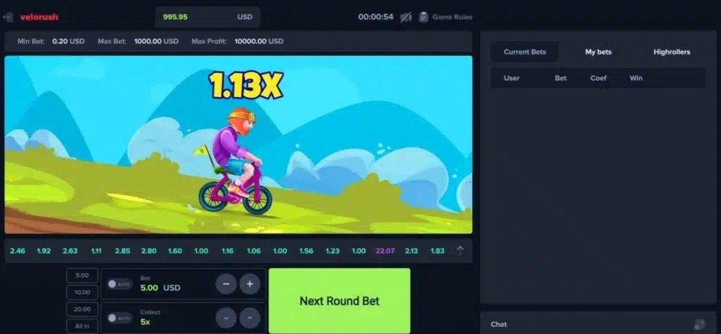 Im Kern basiert Velorush auf einem dynamisch steigenden Multiplikator, der jederzeit „crashen“ kann. Spielende setzen ihren Wetteinsatz darauf, den optimalen Moment zum Ausstieg aus einer Runde zu erwischen. Hier zählen Timing und Risikobereitschaft doppelt!